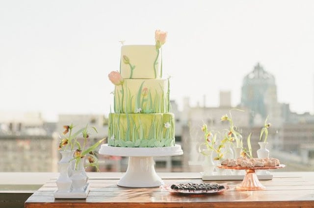 Торты, которые больше напоминают клумбу, явно в тренде на свадьбах! Они могут выглядеть нежно (превосходный вариант для весеннего торжества) или ярко, жизнерадостно (для свадьбы в стиле Whimsical). Но во всех вариациях «цветущие» тортики сохраняют долю необычности.