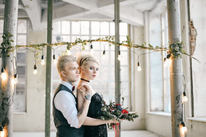 Когда мы слышим слово «свадьба», то подсознательно ожидаем чего-то мимимишного и розового — настолько, что многим это даже надоело. Например, создателям шикарной свадебной съемки под говорящим названием «Перемен!». Перемен здесь хватает — другое и непривычное ВСЁ. Конечно же, это Санкт-Петербург — место, где зародился и жил легендарный Рок-клуб. Только в этом городе можно вдохновиться такими…